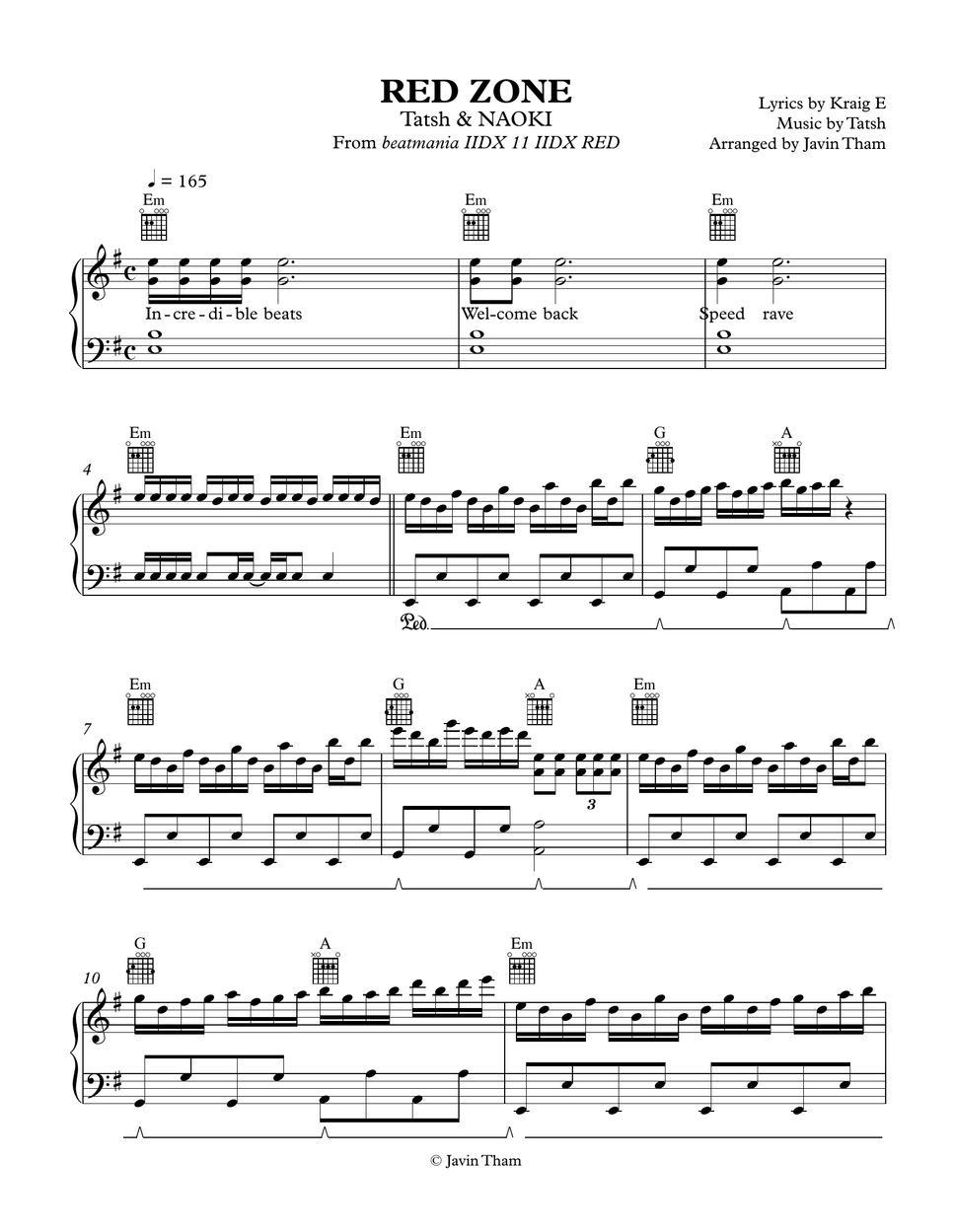 Tatsh & NAOKI RED ZONE (beatmania IIDX11) Sheet by Javin Tham
